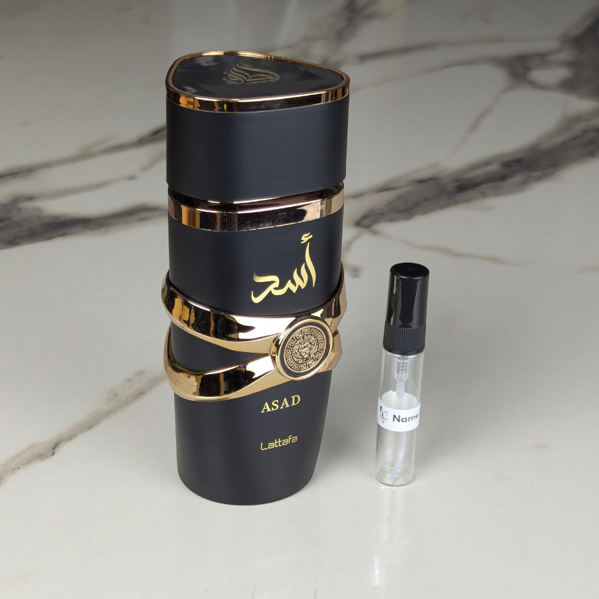 Asad by Lattafa Perfumes is a Oriental fragrance for men. Asad was launched in 2021. Top notes are Black Pepper, Tobacco and Pineapple; middle notes are Patchouli, Coffee and Iris; base notes are Vanilla, Amber, Dry Wood, Benzoin and Labdanum.