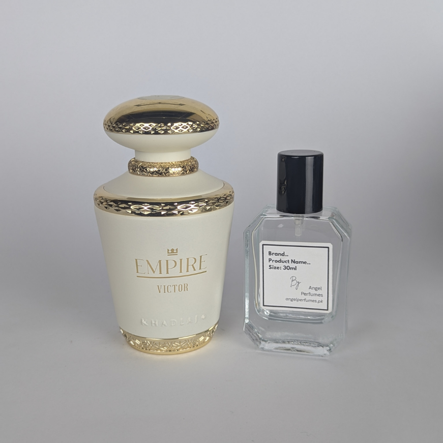 Empire Victor by Khadlaj Perfumes is a Floral Fruity Gourmand fragrance for women and men. This is a new fragrance. Empire Victor was launched in 2024. Top notes are Lemon and Bergamot; middle notes are Caramel and Jasmine; base notes are Vanilla and Musk.