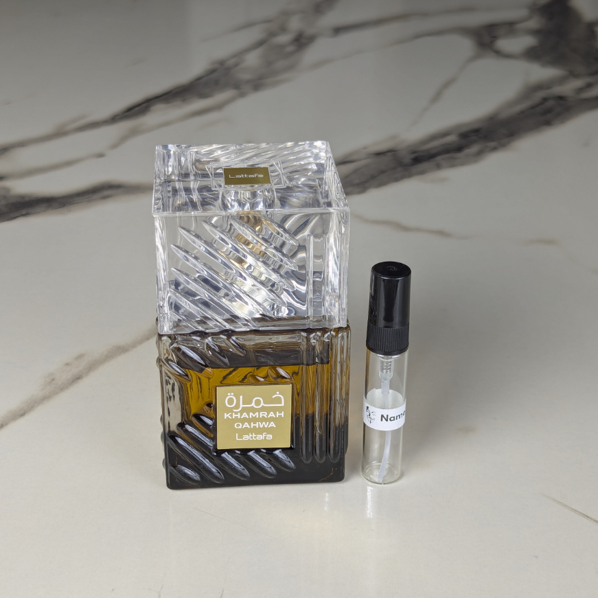 Khamrah Qahwa by Lattafa Perfumes is a Oriental Vanilla fragrance for women and men. Khamrah Qahwa was launched in 2023. Top notes are Cinnamon, Cardamom and Ginger; middle notes are Praline, Candied Fruits and White Flowers; base notes are Vanilla, Coffee, Tonka Bean, Benzoin and Musk.
